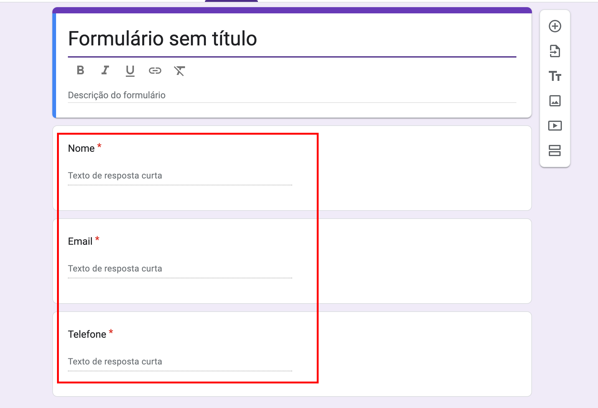 Ao final o seu formulário deverá estar conforme a imagem abaixo: